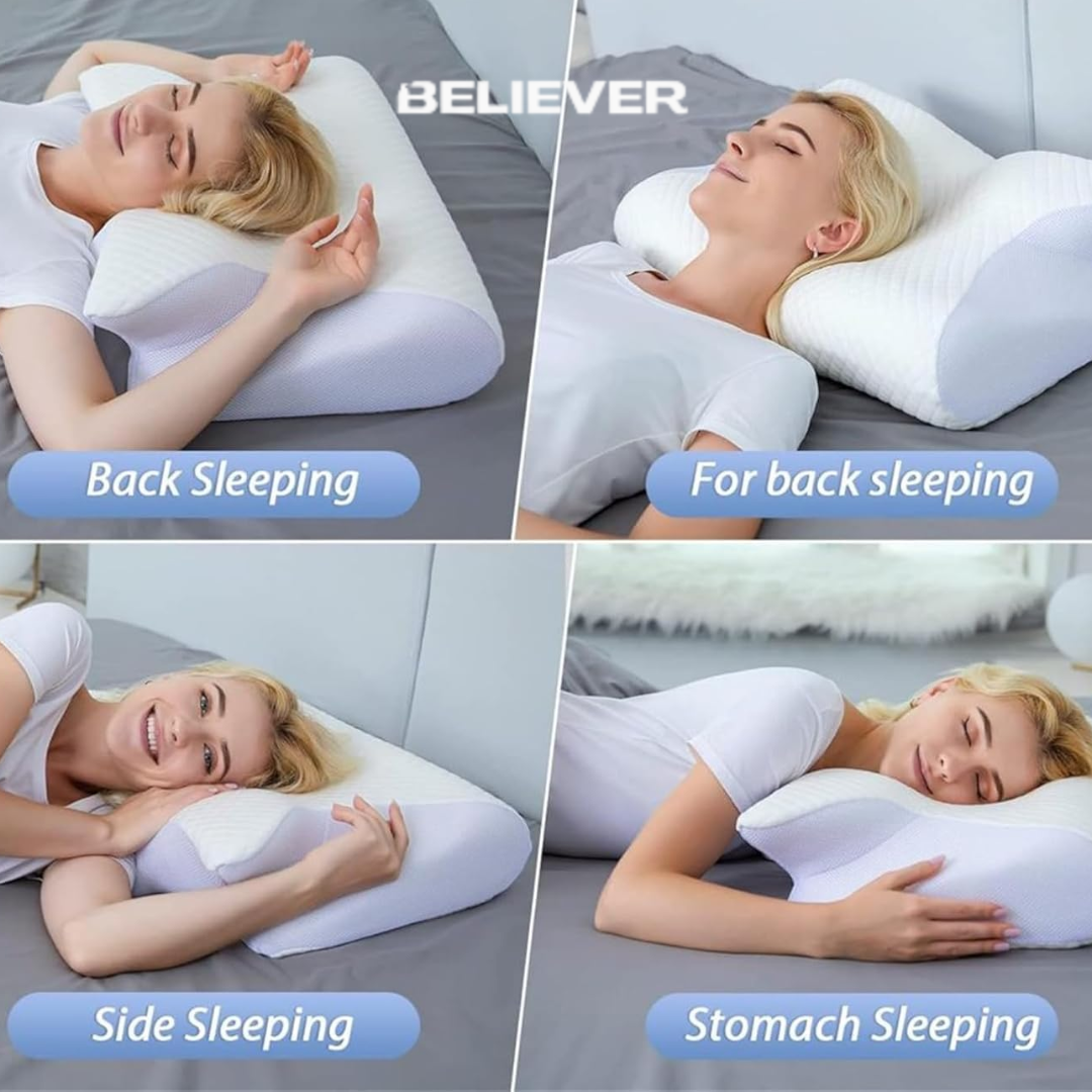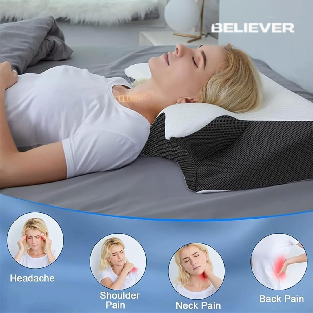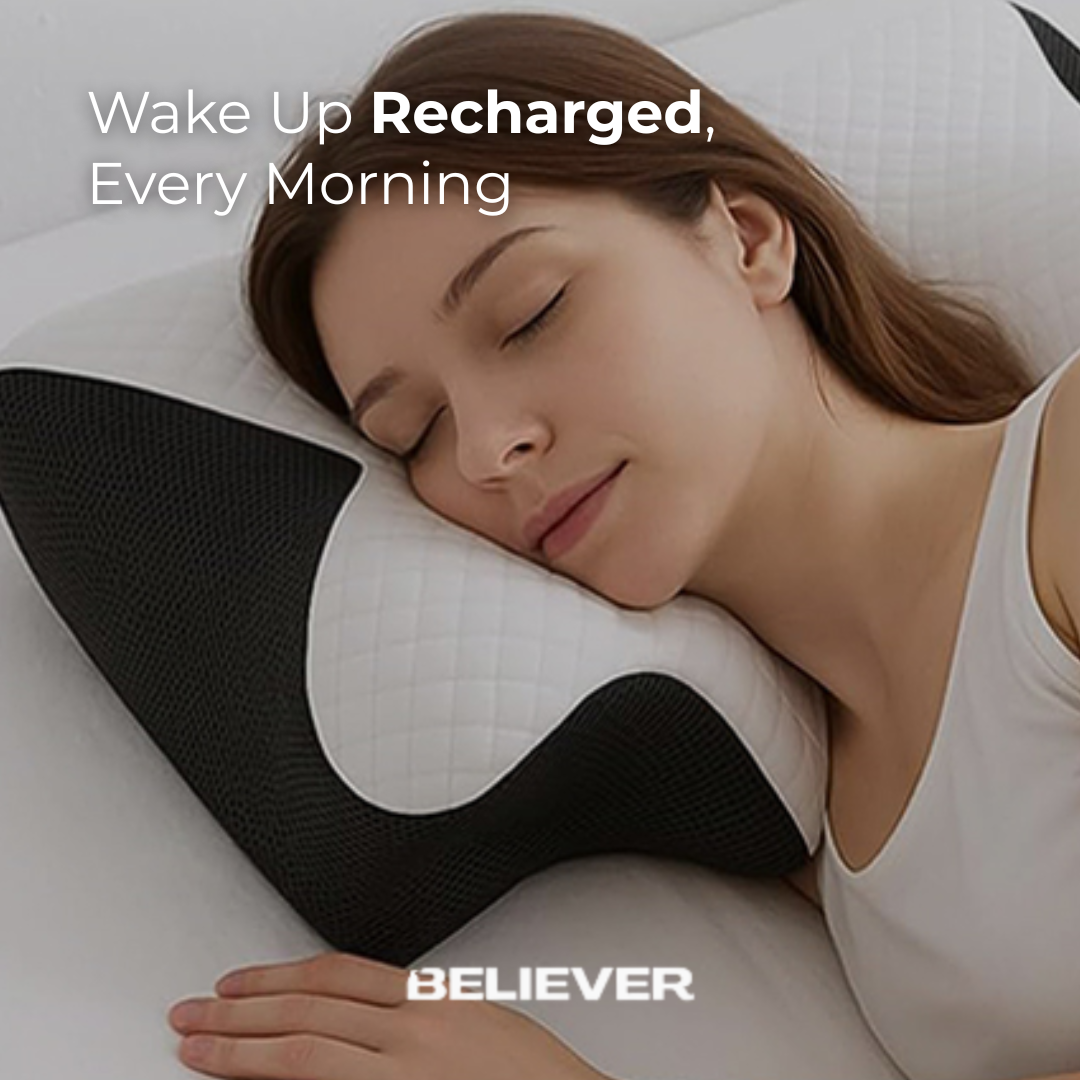 Say goodbye to restless nights with the Believer® Ergonomic Cervical Pillow™ — expertly designed for perfect neck alignment and all-night comfort. Its smart contour supports your head and shoulders, especially if you’re a side sleeper, ensuring even pressure distribution and zero stiffness when you wake. Enjoy cooler, deeper, and more rejuvenating sleep every night.